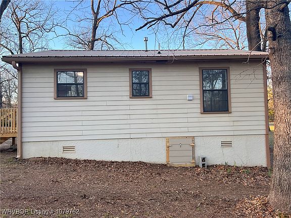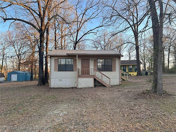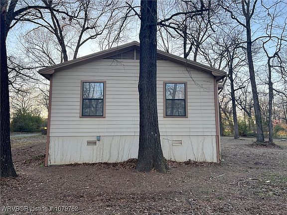 Nestled among mature trees and beautiful natural scenery, this cozy 2-bed, 1-bath home offers the perfect retreat for nature lovers. Recently updated, the interior features new flooring, fresh paint, and modern upgrades throughout. The home boasts brand-new plumbing with PEX lines, new gas connections, a new water heater, and an updated kitchen with new cabinets, countertops, and a GE gas range with a vent-a-hood. The Allen & Roth stainless sink adds a stylish touch. The bathroom has been remodeled with a new tub/shower combo and is equipped with stackable washer/dryer connections for convenience. With a durable metal roof and siding, this home is built with charm and longevity. This home is move-in ready and perfect as a starter home, VRBO or for those looking to downsize. Approximately a 10 minute drive to Fort Smith, AR. Disclosure: This property is Broker-Owned.