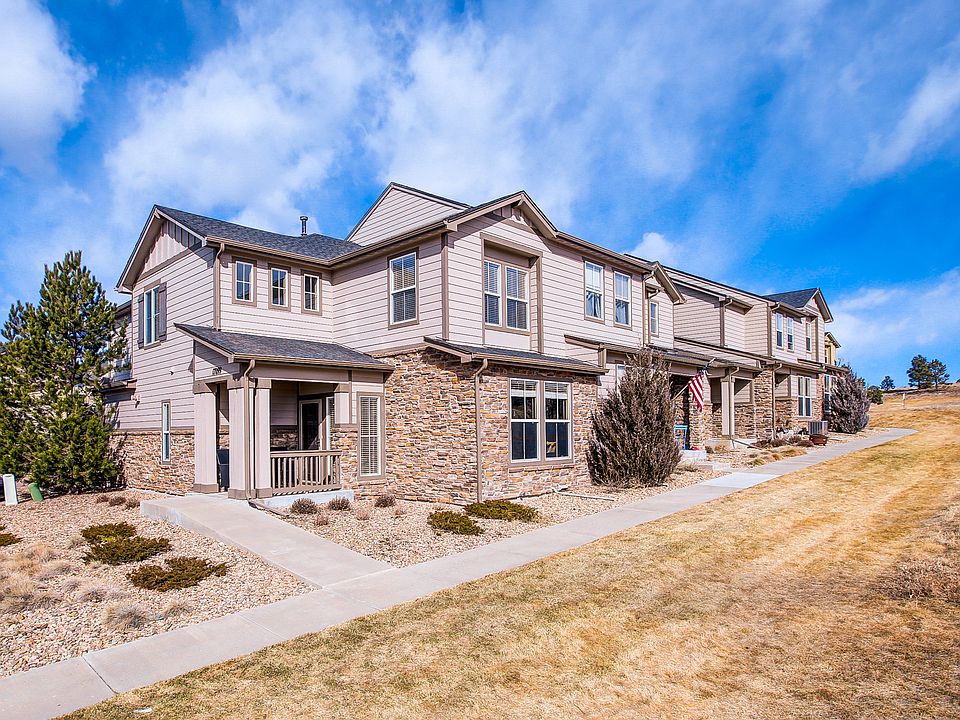 3 bedroom, 2.5 bath, desirable Monument townhome with attached 2-car garage; covered patio facing open space; bright great room with plenty of windows; kitchen with breakfast bar and laundry on main level (washer and dryer included); upstairs master bedroom has attached master bath with walk-in closet; shared bath has dual sinks; beautiful mountain range views from the bedrooms; end unit with guest parking next to the townhome.