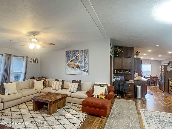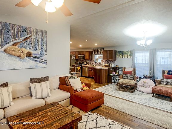 Situated on a generously sized lot, the property includes a fenced yard, two storage sheds, and plenty of parking. The deck is the perfect place to take in the spectacular, unobstructed views of Mount Sopris to the south. High-quality interior finishes, abundant natural light, and beautiful wood flooring throughout add to the warmth and character of this home.
