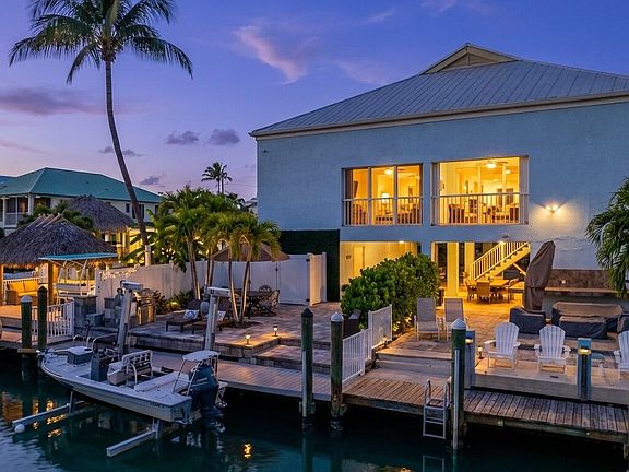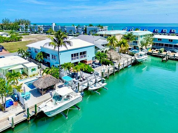 Live in Paradise! Not your average half duplex! Ideal Vacation Rental Property! Sold partially furnished with Elegant & Sophisticated style and brimming with natural light.This distinctive island residence offers soaring double-height windows, rare architectural design, and thoughtful updates throughout.Highlights:2 Bedrooms / 2 Baths | Over 1,400+/- SF of living space plus 422 SF A/C finished bonus room + 171 SF A/C shop storage. Up to 12' ceilings and wide-plank flooring throughout, impact rated windows and doors for peace of mind. Custom kitchen with sleek design, premium finishes, and ample storage. Bathrooms updated in 2022 with marble finishes, new vanities, and mirrors. additional 2022 updates: electronic blinds (family rm & master) & new landscaping (front & back)Outdoor Living:Screened balcony off main living area, private primary suite balcony with peek-a-boo ocean view, backyard patio with brand-new pavers connecting front to back. 30ft dock with step-down composite decking -- quick 5-minute idle-speed access to open water, 2- min walk to white sand beach! Bonus Spaces:Dedicated laundry room with sink, small office nook and 4X6 composite shed for more storage. SPECIAL OFFER:Seller will include 1-year membership at your choice of GlunzOcean Beach Club or The Cabana Club (just 2 minutes away!) -- enjoy premium beach and pool access with none of the maintenance or liability of a private pool.Other Features:Oversized guest bedroom fits a king-size bed easily. Wonderful elegant double-door entry and protected staircase, electric hurricane shutters & transom windows throughout. flexible closings -- seller open to offers and can accommodate quick closing. A standout property inside and out -- one of the most distinctive half-duplexes on the island. Elegant, upgraded, and move-in ready. Must be seen in person to appreciate its light, layout, and architectural appeal!