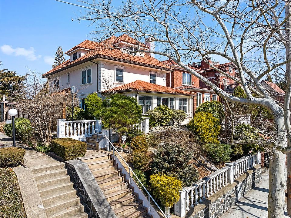 As you ascend to the second level from the glass staircase to discover a picturesque seating area that is naturally lit from the beautiful original led inlay round window. This space provides a peaceful setting for reading and relaxation. The generously sized bright bedrooms have ample closet space and plenty of room for a desk or additional furniture. The two bedrooms are accompanied by a fully renovated bath that offers indulgent features such as a soaking tub, stand-up shower, and double sink vanity. The primary bedroom suite boasts lots of windows and a luxurious full bath with a double shower and vanity.