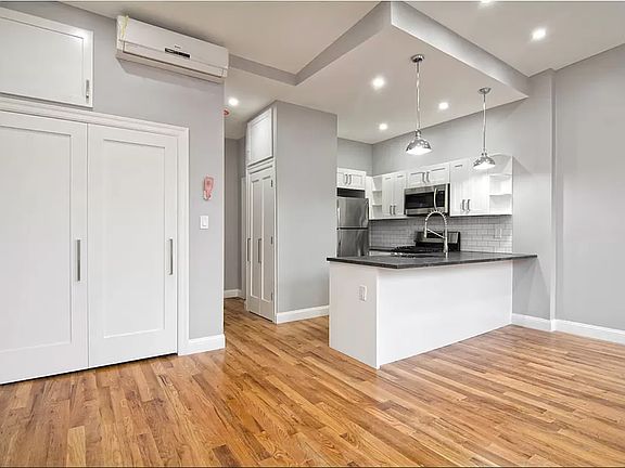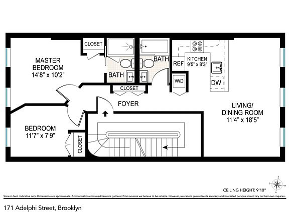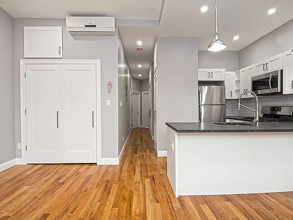 171 Adelphi Street is a completely renovated, reimagined brownstone residence offering an entire floor with two bedrooms and two bathrooms. Designed with clean lines and modern finishes, this home blends timeless brownstone charm with contemporary comforts. Inside, you'll find soaring 9'10" ceilings, oversized windows that flood the space with natural light, and wide-plank oak floors throughout. The open kitchen is equipped with brand-new stainless steel appliances, including a 24" dishwasher, fully integrated microwave, GE range, GE refrigerator, and a stackable in-unit washer and dryer. The primary bedroom features an en-suite bath, while a full second bathroom serves the additional bedroom and guests. Each bedroom includes a closet with overhead storage, adding function to the elegant design. Located just off lively Myrtle Avenue, you'll have easy access to neighborhood cafes, restaurants, shops, and all of Fort Greene's beloved amenities. Pets are considered on a case-by-case basis. Available for immediate occupancybe the first to experience townhouse living in the heart of Fort Greene.