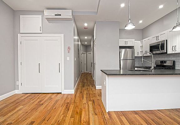 171 Adelphi Street is completely renovated with two bedrooms + two bathrooms. In-unit washer and dryer, split air conditioning units, en-suite master bedroom, a full second bathroom, and kitchen with new stainless steel appliances. Your new home features stainless steel appliances, including a 24" inch dishwasher, fully integrated microwave, GE range, GE refrigerator, and a stackable in-unit washer and dryer. Soaring ceilings measuring 10' 9" in the living room and large windows allow great sunlight and a spacious feel. There are closets in each bedroom with overhead storage space. The location is convenient, just off buzzing Myrtle Avenue and all of your neighborhood amenities just moments away. Be the first to experience townhouse living in Fort Greene. Pets will be considered on a case-by-case basis. Available for September 15th move-in.