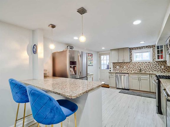 Stunning 2 Family home w/parking in popular Bergen-Lafayette, just steps away from Berry Lane Park and 3 blocks from the Light Rail at Garfield Ave! Renovated and designed with convenience in mind - Huge updated Kitchen with SS appliances and built-in wine fridge that leads out into the Magical fenced in backyard with a custom 12x14â Pergola and Stone Fire place, perfect for entertaining! Open living concept on 1st floor with large dining area and 1/2 bathroom. Ascend upstairs for 3 BRs and 2 Baths, including a jetted Jacuzzi tub in the Master Ensuite and large closets. The 3rd floor has another 3 BRs and 1 Bath, with possible private entrance on the second floor for built-in-rent income with maximum privacy. Loads of storage space in closets and the attic, Adorable Laundry Suite, and everything you could need nearby!