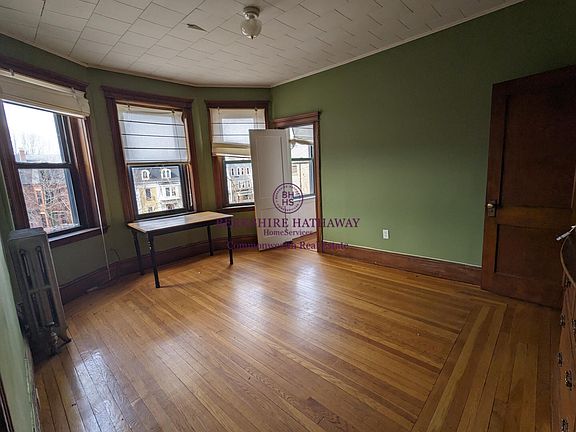Only a few blocks from Central Square on a nice tree lined side street. This is a very large 2 bedroom apartment with each bedroom on opposite ends of the apartment. The rent includes heat and how water. There are very high ceilings, natural wood trim and many nice architectural details set this apartment apart from most places. You will love the tree top private porch with unobstructed views. There is a very large eat-in kitchen with a newer fridge, stove and washer dryer. All the rooms have generous space. This brick building is a turn of the century classic. The parking is on street by permit, but with the close proximity to the T you may not need a car. Available July 1. First Last and one month fee.