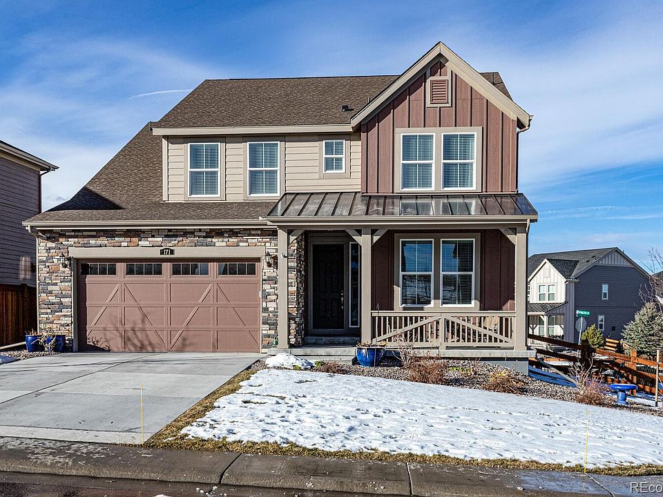 Welcome to this beautiful home in the Castle Valley neighborhood. This home has 4 bedrooms, 4 baths. This open floor plan features an oversized great room with a gas fireplace and natural light throughout, a gourmet kitchen with 42" cabinets w/crown molding, slab granite island with sitting at the island in kitchen, stainless steel appliances, gas range, and walk-in pantry. Great for entertaining and plenty of room for family gatherings with the large eating space off of the kitchen area. You can walk out to a covered deck perfect for entertaining or just relaxing outdoors. The large master suite has coffered ceilings, massive windows, 5 pc master bath, walk-in closet. Upstairs features three large bedrooms. Two bedrooms are adjoined by Jack-N-Jill bath. The third bedroom has a private en-suite bathroom. The laundry is located on the second floor alongside the bedrooms. This large back yard has garden planter boxes to plant your vegetable garden next spring and summer, 3 car tandem garage. Close to everything that Castle Pines North has to offer, including Restaurants, Shopping, Schools, and Trails. Must See! This one will not last!