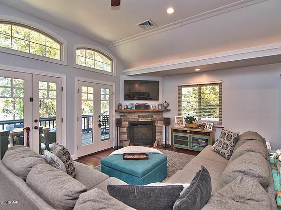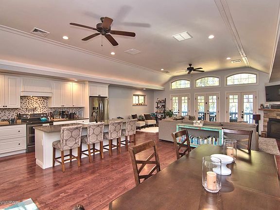LAKEFRONT HOME ON BEAR CREEK LAKE! This stunning property features OPEN CONCEPT LIVING, MAPLE HARDWOOD FLOORS, high ceilings w/ recessed & accent lighting, & lots of natural light! Recently expanded/COMPLETELY REMODELED! GOURMET KITCHEN w/ farmhouse sink, country white cabinets, silestone counters, & tile backsplash! Forced air heat/CENTRAL AC! Spacious MASTER SUITE w/ large WALK-IN CLOSET! 3 CAR ATTACHED GARAGE! Enjoy views of the lake from the large WRAPAROUND DECK or spacious fenced in yard! Convenient 2nd floor laundry room! Lower level boasts a family room w/ wet bar and 2 spare rooms, perfect for flex space--office, hobbies, guest quarters, etc. Relax on your private dock on one of the Poconos' most sought after lakes! Minutes to historic Jim Thorpe & all Pocono attractions!