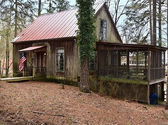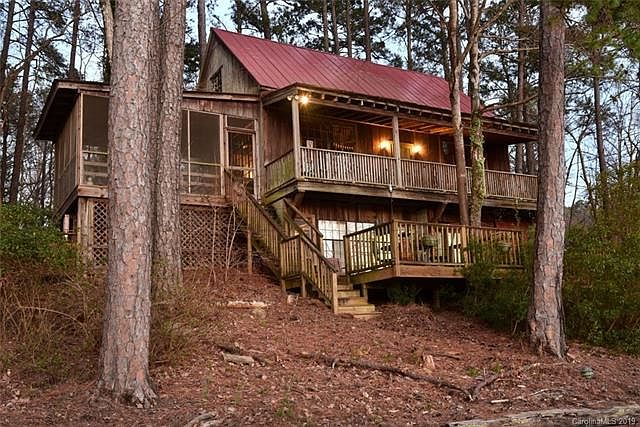 One-of-a-kind Cabin on 3 Lots!! Nestled in the woods with a Big Water View, this is a rare find! Cypress siding, very tall cathedral ceiling in the great room with beautiful windows overlooking the lake. Bedroom on the main has no closet, plus a sleeping loft overlooking the great room that has its own half bath. Big screened porch. Large basement with several rooms and full bath. Extra nice 3-slip boathouse and gazebo out over the water! Wooden sea wall. Over 300 ft of waterfront!! You can't beat this location! Just across the water from marina and restaurant!