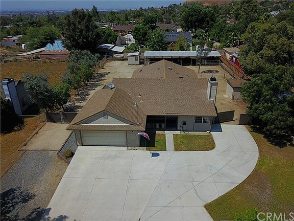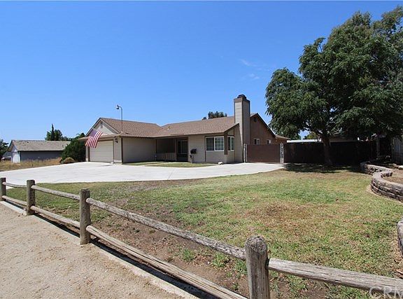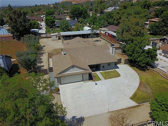 Highly desired horse property at the center of nearly everything. Located just 1000 feet from Ingall's Park, the home of a multitude of equestrian events, as well as miles of riding trails, the Santa Ana River bed! This home was completely remodeled in 2005. Re-roofed with 50 year asphalt architectural shingles. Electrical service was upgraded to 200 amp service. Two 50 amp circuits feed your shop, hot tub, or RV. Full RV hook ups to include power, water and sewer. RV/large truck access on either side of the house with two driveways, one of which is 6" high test concrete for large heavy vehicles. Gas service was upgraded to a 1". Sewer lines were upgraded to 4" lines. Newer central air and heating. Upgraded kitchen with maple cabinets, stainless appliances, and a travertine back splash with granite counter tops. Large open dining area. The Oversize master bedroom has 10' ceilings, walk through closet, and a huge master bath with travertine flooring, counter tops, shower, and a built in pedestal full Jacuzzi tub. The Great Room and separate living room are designed for entertaining with vaulted ceilings, carpet and hardwood floors. Horse facilities include a 64'x24' covered stall area comprising up to 4 16'x24' stalls, with an attached 64x40 arena. There are two 10'x12' out buildings to serve as storage for tack and feed, and yard and RV maintenance equipment. It's also zoned for 5 horses. This house can offer you more for your money than any similar home anywhere else.