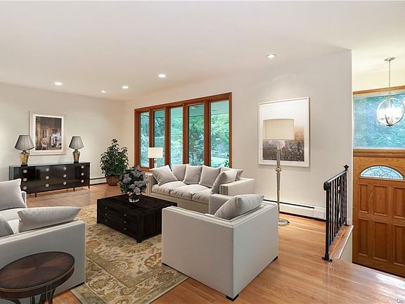 As you enter through the front door you are greeted by the gleaming hardwood floors of the living room and a freshly painted and updated interior. The living room flows into the dining room which has French doors to both a deck and a rustic screened porch which allows a serene view of the picturesque 3/4 acre yard of lawns and tall trees. The kitchen is updated with wood cabinets, stainless steel appliances, granite counters, tile back splash and floor. The bedroom level features a master suite with full bathroom and two closets, two additional bedrooms and an updated hall bath with marble topped vanity and tile floors. The lower level has a family room with wood burning fireplace plus and den/guest bedroom. There is an additional remodeled powder room, laundry room and a two car garage. This house is ready for new owners! Taxes do not reflect the $2150 STAR deduction.