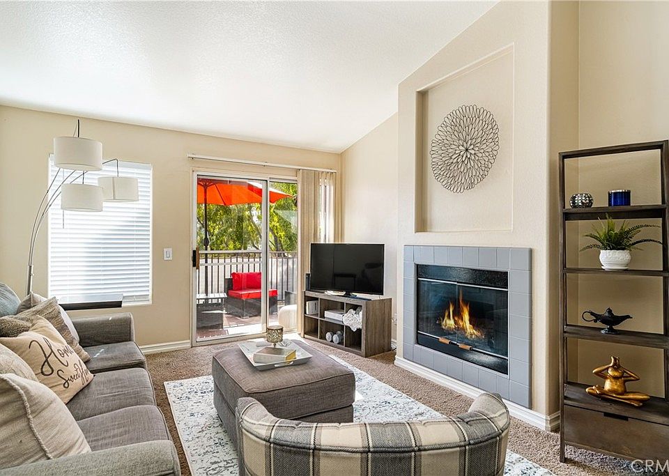 Welcome home! This charming upstairs 2 bed, 1 bath condo is located in the highly desirable Lake Forest neighborhood of Salerno in the Foothill Ranch community. Step inside and feel right at home in the light and bright space, with its vaulted ceilings and open concept between the kitchen and living room. The kitchen is equipped with tile flooring and countertops, sparkling white cabinets and appliances plus has a lovely view from the kitchen sink. The cozy kitchen opens to the dining area complete with a chandelier and the comfortable living room featuring a fireplace and sliding glass door to a private balcony. Rounding out the floor plan are two generously sized bedrooms that are separated by a full bathroom. Not to mention, the convenient indoor laundry includes a full-sized washer and dryer that will make laundry day a breeze! Outside of the home you have a 1 car detached garage and access to well kept community amenities such as a pool, spa, hot tub, BBQs plus a cooking area in the Salerno HOA. The second HOA has a newly rebuilt pool plus a clubhouse that is available to rent for private parties. Minutes drive to essential shopping and dining, local parks, trails, award winning schools, and easy access to the toll roads, you will love calling 171 Chaumont home! Don’t miss out!