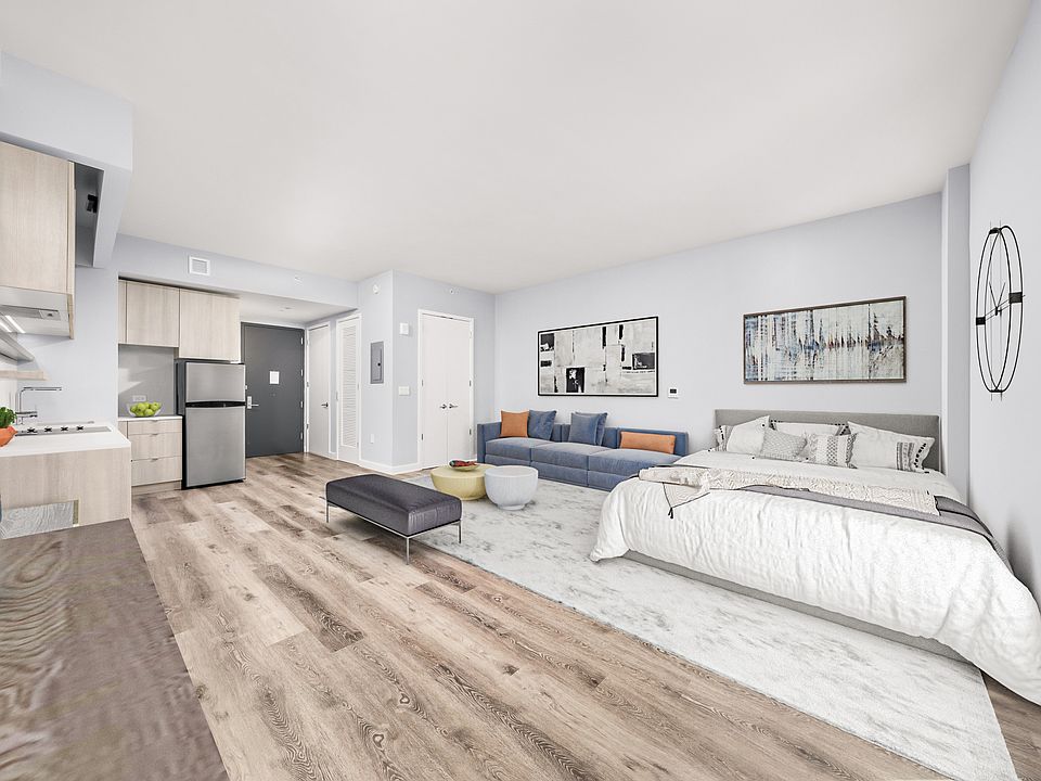 Condo quality finishes in the newest ODA Development. Apartment features; oversized sound-proof windows, solar shades, Mitsubishi thermostats in all rooms, both personal and virtual doorman. The open kitchen features customized cabinetry with white quartz countertops and backsplash. Stainless steel appliances including Fulgor Milano Oven, Belk paneled dishwasher. The bathroom is spacious with a soaking tub, rainfall shower head and wand, full mirrored wall with built in lighting and medicine cabinet. Ample closet space throughout the apartment with washer and dryer in unit.