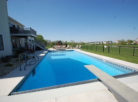This home will WOW you. Open floor plan with vaults archways and attention to detail. Nice kitchen with beautiful cabinets and breakfast area. Sliding doors to deck. Open stairway leading to a full walkout basement. Basement is partially finished with a bedroom. Doors lead to a spectacular inground pool areas with spa. Great views of pond and wetlands. Feel like you are on vacation all year!