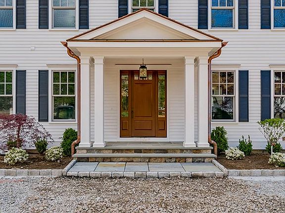 Sophisticated 2017 colonial that combines timeless architectural elements with modern contemporary details. Ten foot ceilings on the first floor with a spectacular double height ceiling in the family room. Fireplaces are located in the living room, family room, lower level play room and the master bedroom. Special details include custom 9 ft sliding barn doors, antique doors in the family room, antique doors in the wine cellar and a one of a kind wine tasting table in the wine cellar as well.Expansive lawn and mature plantings can be seen from the bluestone patio with firepit and outdoor grill.A special feature is a 1200 sq ft two bedroom charming guest cottage with a fireplace and covered front porch.Generator, sprinkler system.