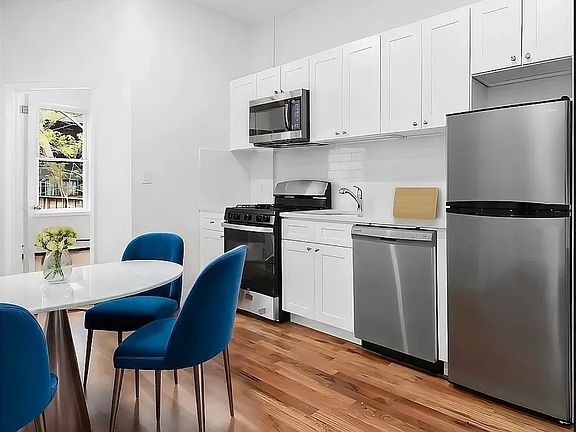 Discover this beautifully renovated 3-bedroom, 1-bath apartment in the historic Bushwick neighborhood, featuring a huge private backyard perfect for relaxation and gatherings. The unit boasts an in-home washer/dryer, a modern kitchen equipped with stainless steel appliances, and gorgeous hardwood floors throughout. Spacious bedrooms offer ample closet space, and the high ceilings with contemporary finishes create a bright, airy atmosphere. Conveniently located just one block from the L train at Wilson Ave, this stunning apartment is a commuter's paradise. Don't miss out on this incredible opportunity! Schedule your exclusive viewing today!! Text Zahava for a quicker response!