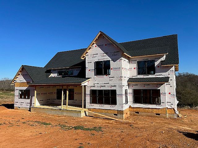 We will work with a buyer agent! This beautiful new 2 story modern farm house is located just 3.5 miles west of the circle in historic downtown Pittsboro on some of Chatham County’s finest country farm land. It will be move-in ready next spring/summer 2025 with many final finish selections still available to choose and customize to suit. The property features scenic open rolling pasture on private Dairymont Dr. Welcome family and friends to an expansive open floor plan with a 16 feet tall ceiling in the great room and craftsman style doors and trims. The large front porch faces west to enjoy the setting sun. The back porch is centered on the back of the great room looking east out over the back pasture to the wood line at the creek. The large 2 car garage has plenty of room for storage/work areas. There are over 500 sf. of unfinished second floor separate bonus areas ready to be finished into fabulous extra space, potentially totaling an all combined 4,694 sf. under roof. The gourmet kitchen is fabulously appointed and wide open to the great room. The open dining room is adjacent to the kitchen and great room, making accessibility to the formal dining table nicely convenient and central. There is separate office space located behind the kitchen with high speed fiber internet. The 3 guest bedrooms are all located on the second floor and feature plenty of room and closet space, with 2 bathrooms to share and views of the natural landscape. Between these bedrooms is a loft/gameroom area for the perfect space to hang out. The spacious master bedroom is privately located on the first floor taking up the entire left side of the house, away from the busyness of the great room and kitchen, including a wonderful high vaulted ceiling. Your king or queen size bed will sit perfectly under the overhead transom style windows. The master bathroom features separate sinks, water closet, soaking tub, along with a large walk-in shower and closet. For more information and pictures of others that have built this gorgeous house plan, please copy, paste, and visit the link below. Note: Design changes have been incorporated to make our build slightly different and uniquely custom from the plans and pictures online. https://www.architecturaldesigns.com/house-plans/modern-farmhouse-plan-rich-with-features-2886-sq-ft-14662rk