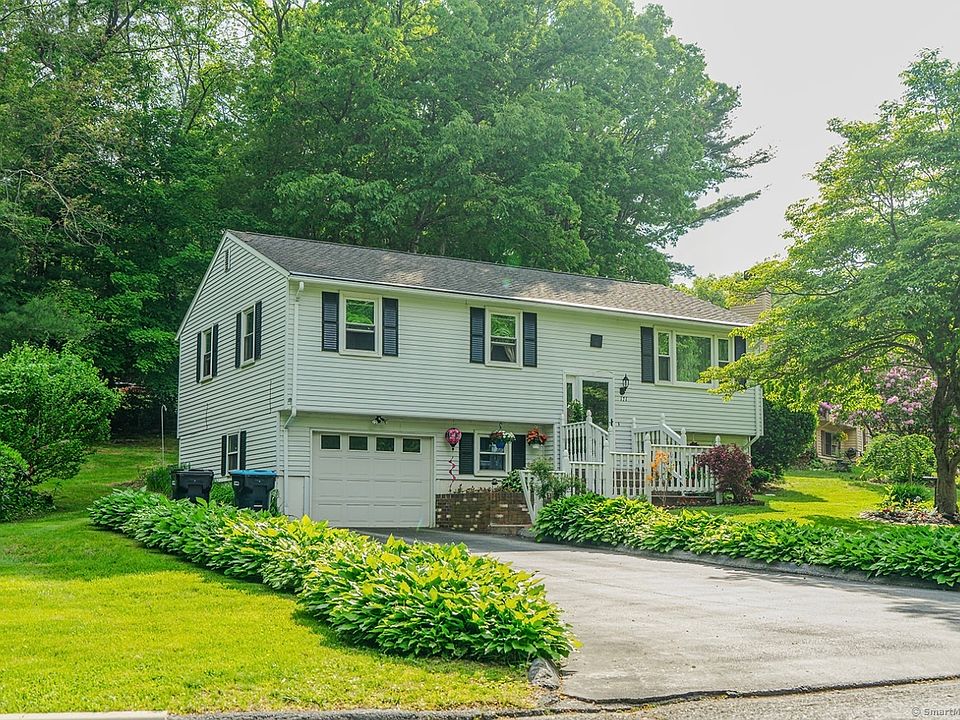 Welcome to this warm and inviting four bedroom one and a half bath, raised ranch, proudly cared for by its original owners for more than half a century. Set on a beautifully landscaped lot, this home radiates pride of ownership. Step inside to discover updated flooring throughout the main living areas (2024). Replacement windows with a lifetime warranty fill the space with natural light and offer serene views of the surrounding greenery outside. Upstairs features a spacious living room, kitchen with stainless appliances, dining room, and three bedrooms, plus a fully updated bath. The lower level offers an additional bedroom plus an office/studio, half bath, laundry room, a cozy family room for guests and gatherings, and one car garage. Outside, is a freshly stained deck with built in seating, overlooking a lush lawn and perennial gardens. This home is a rare opportunity to own a lovingly maintained property with a history of care and devotion. Whether you're just starting out or settling in for years to come, this home is ready to welcome its next chapter. Selling as is. Gutter guards added recently