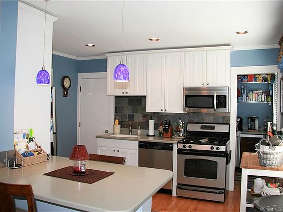 Professionally updated first floor unit with open floor plan. Great location....ideal for the commuter or walk to Griffin hospital. Two spacious bedrooms, updated baths, custom kitchen full applianced with pantry, high ceilings, central air. Off street parking. Basement storage. A must see....unit will go fast. Credit checked by listing office at no charge.