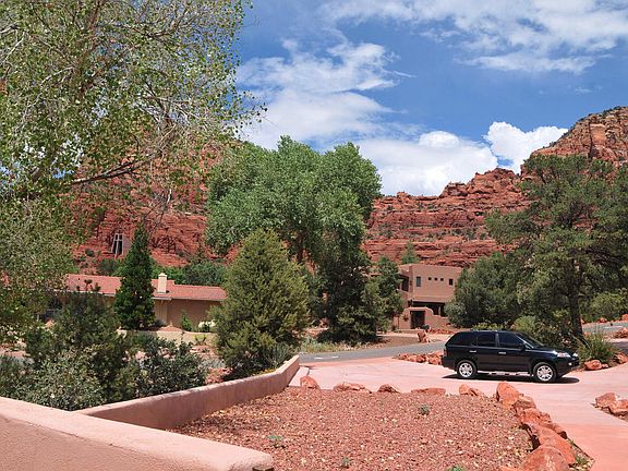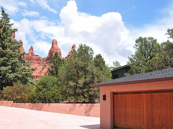 Surrounded by Red Rocks, this total renovation in the Chapel section of Sedona offers privacy,views and is move in ready. Gently used a few weeks a year, the house feels new. Updated Everything! Backs to Forest Service. Slate floors, custom cabinets, custom doors, glass tile in the bathrooms and all new Anderson Windows throughout. Big garage with laundry room. Walled backyard with room for anything, even a pool.Exterior decks are Saltillo tiled and the front deck is walled and gated with a great view of The Chapel. The large garage could be a nice space for a workshop or studio and has windows in what would be the third bay. Great neighborhood that is secluded but close to all Sedona has to offer.