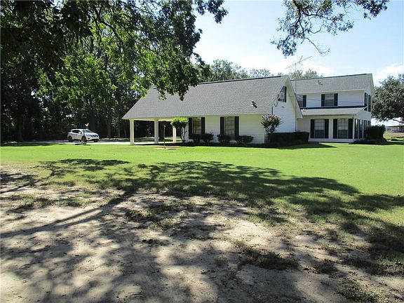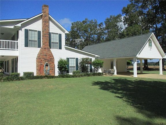 Looking for seclusion? Look no further. This beautiful, well-kept two-story home is situated on approximately 14 acres with gorgeous oak trees at the end of a dead-end road. From the double carport, you will enter into a large den with a great room built above that has many options. It could be used for storage, office space or even a playroom. From the den, the main floor has two bedrooms each with their own bathroom, a kitchen with breakfast area and a formal dining room. The kitchen has granite countertops and wood plank flooring. Upstairs has 2 more bedrooms joined by a jack and jill bathroom. This home is all vinyl siding and features a two-year old roof and beautiful shutters. two 40 gallon gas hot water heaters three central units