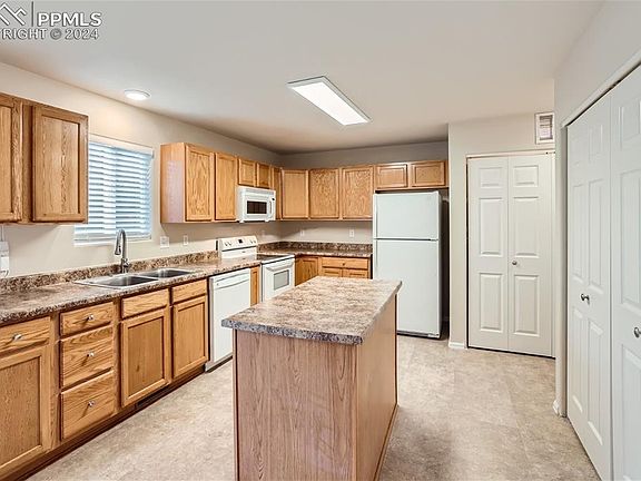 Beautifully updated, open & bright main lifestyle in move-in ready condition* New luxury vinyl throughout, new nickel hardware & light fixtures, all bedrooms with ceiling fans & remotes, remodeled oversized master shower with custom tile* The entry opens to the family room w/ large picture window with a corner gas log fireplace with white subway tile surround*Spacious island kitchen opens to the dining area that walks-out to a private patio, perfect for your summer barbecue* Primary bedroom has adjoining remodeled private bath, ceiling fan w/ remote & closet* 2 secondary bedrooms each w/ fans, one with opaque glass French doors off the dining area, bedroom or office space*Newer Washer/Dryer, 2" white foe blinds throughout, plus attached 1-car garage w/ opener, all on main level, no stairs* conveniently located close to both Powers and Academy Blvd, with easy access to most everything*Show today!