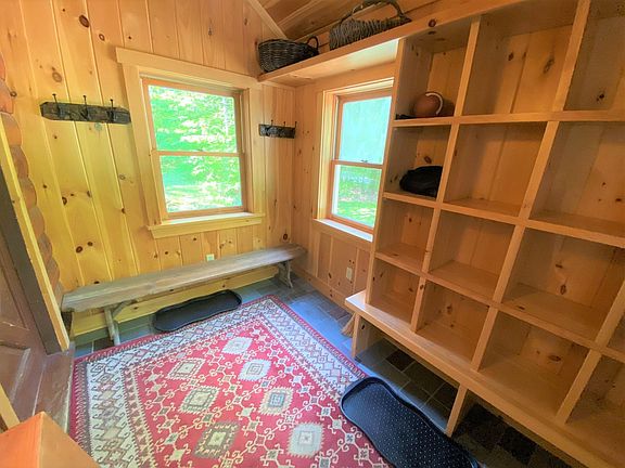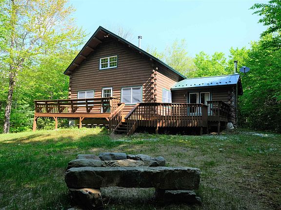 Beautiful log home in a private country setting yet minutes to the Ludlow Village and Okemo Mountain. Enter this home through the large mudroom with plenty of built-in storage. The open-concept living space is cozy yet spacious with high, vaulted ceilings and a Vermont Castings blue enamel wood stove to keep you warm. The kitchen features stainless steel appliances and lots of space to cook. The dining area is located just off the kitchen with lots of windows to take in the beautiful setting. Relax in the living room or open up the back door to the renovated deck in the summer. The main level also has the primary bedroom with doors to the deck and bonus room. Upstairs, there are two bedrooms for extra space for guests or family. The interior feels warm with the pine walls and bright windows. Metal standing seam roof is excellent for the Vermont winters. This home is move-in ready whether you are looking for a primary or vacation home. There is a large yard for outdoor play, and the V.A.S.T. network is just down the street. Taxes are based on current town assessment.