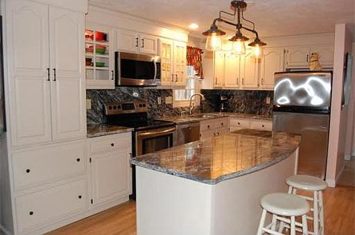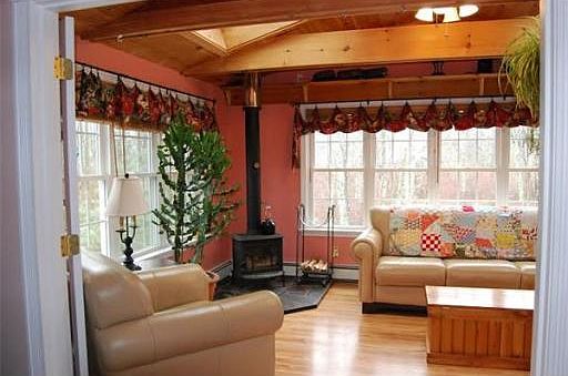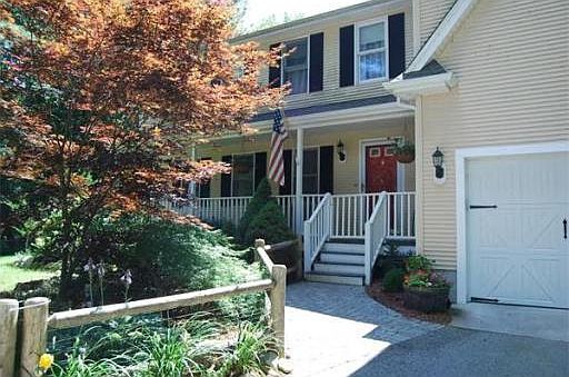 Beautifully sited at end of cul-de-sac this Colonial home is new to market! Recent updates include Granite/Stainless Kitchen w/upgraded cabinetry and large center island for seating. Kitchen open to Dining Room adjacent to fireside Formal Living Room. The Family Room boasts cathedral ceilings and lots of windows looking onto the wooded views, opens to deck for your summer barbecues! Convenient 1/2 bath off kitchen. The Master Bedroom with en suite features his and hers walk-in closets. 3 additional bedrooms tastefully decorated plus a large laundry room on 2nd level! Bonus finished basement offers extra living space for the in-home office or kids space. Property features Farmer's Porch, Sprinkler System, well kept grounds with perennial gardens and oversized 2 car attached garage with workshop space. Make this lovely home your own!