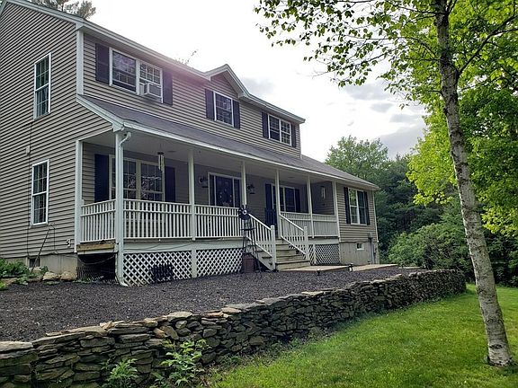 Oakham, Yellow Rose Farm is a charming Colonial with Hugh Country Kitchen for Family & Friends to gather . From here, Immediate access is provided to rear deck or adjacent 26 X 13 Front-to-Back Family Room w/raised hearth Wood-stove & beamed ceiling the Formal Dining Room w/ custom moldings. Upstairs is a very spacious Master Suite w/ Walk-In Closet and Jetted Tub, 2 additional bedrooms with Main Bath with Laundry. Basement could be finished for playroom or gym area. For the equestrian, this very private (for privacy seekers) 3 Acre setting provides a two Stall Barn w/ two paddocks & abuts town forest land . The paddock is fenced in w/ a lean too in the far side of the field. There is water and electric in the barn and on site. There is an electric wench to host the bails of hay to the barns loft for storage. Front of barn is fenced in with a chicken-coop. The Farmers porch on the front of the house & a fire-pit on the side yard are a great place for Family & Friends to gather