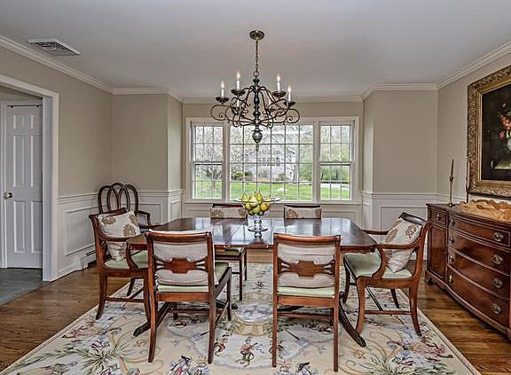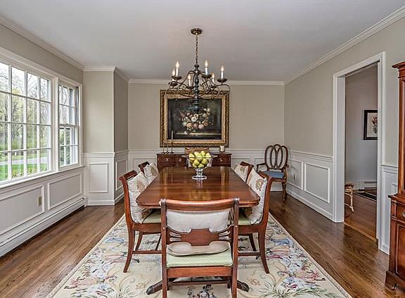 Beautifully updated, classic colonial style home close to town & shopping. Great flow for entertaining w/stylish updated eat-in kitchen w/large butcher-block island. Vaulted family room w/wood-burning fireplace + living room w/fireplace & formal dining room w/chef's swing door pass through to kitchen. Spacious master w/newly renovated bath w/glass shower, double granite-topped vanity & large walk-in closet. 3 add'l spacious bedrooms plus recently renovated hall bath. Fin LL incl rec room & functional mudroom. Level manicured lawn & perennial plantings. Tons of natural light through multiple large picture windows. Expansive deck runs the length of the home. Main floor laundry. Freshly painted. Just move right in to this quality home!