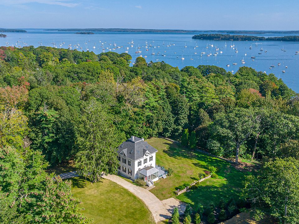 Prominently located between Foreside Road and the Atlantic Ocean, this spectacular Grande Dame offers a rare plantation-style setting as you enter through stone pillars and meander down a long private drive with a canopy of large mature trees, and glimpses of Casco Bay. This historic circa 1880 home on an expansive, sunlit 1.85-acre parcel has the commanding presence of a bygone era with elevated seasonal ocean views, original stone walls, and architectural detail nothing short of a masterpiece. It offers spectacular exterior trim work, a grand center staircase, intricately carved moldings, high ceilings, multiple fireplaces, and a dramatic great room. Freshly painted throughout the interior, with a new roof, all original charm and character have been beautifully preserved. Located in the heart of Falmouth Foreside, it's minutes to Portland Country Club and Yacht Club, waterfront restaurants, and shopping, and just ten minutes to the Jetport and vibrant city of Portland.
