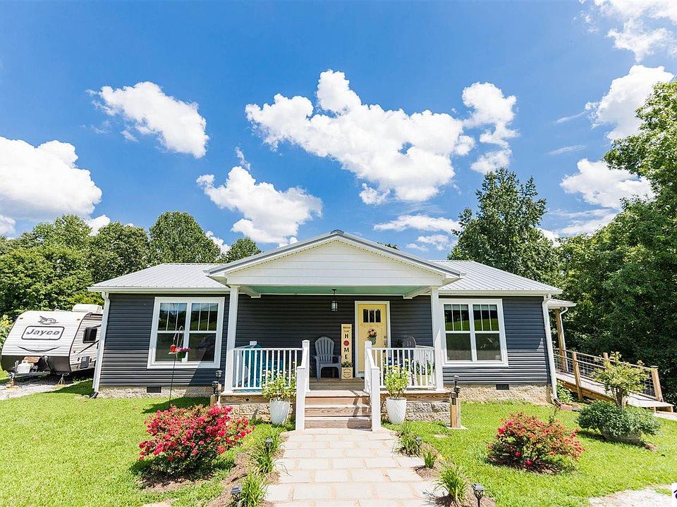 Come tour this lovely 2 bedroom, 2 full bath home sitting on over 2 acres in Leitchfield that is an easy drive from Elizabethtown, Nolin and Rough River Lakes. If you are looking for quiet country living, this is the place for you. The home is less than a year old and features large living spaces. Both bedrooms are both large and have large walk in closets. The living room is large and open with a vaulted ceiling and large ceiling fan. The kitchen features granite countertops, custom raised cabinets, and a large pantry. The kitchen and dining area are also very open and bright. Speaking of bright, the living areas feature large windows with stellar views of the beautiful property. Outside, you have a huge covered porch and deck to sit and enjoy the property and wildlife. There are three out buildings, all with electricity hooked up. The garden shed has a vent fan and a 220 hookup. Both storage container buildings are watertight and easy to access. There is a concrete pad between the two with a roof over it so you have a carport to protect your car, boat, or RV. There is a garden that has been wonderfully maintained and the fall vegetables are already planted and can be yours to harvest. At the rear of the property, you have a year round creek that is fed upstream by a few natural springs, one of which is in a cave not too far from the property itself. This property is truly a paradise with trails cut in for easy access. Dont let this property get away. Schedule your showing today!