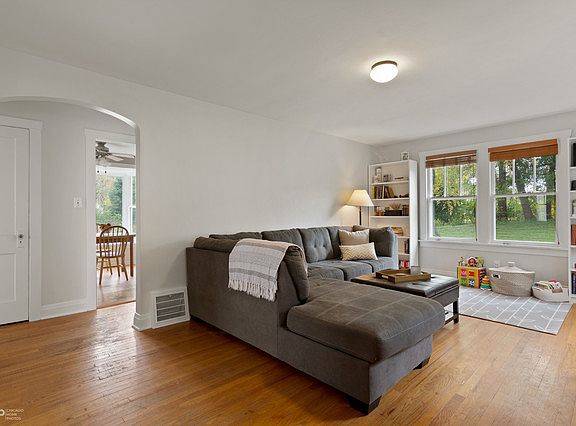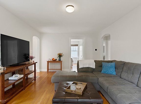 Move in to this idyllic Cape Cod style home in the award-winning town of Crystal Lake. Known for it's top-rated schools and small town charm, while still being just an hour from the city. This home is on the corner of two quiet streets, and walking distance to the Metra station, downtown businesses, and Crystal Lake Brewery. Upon entering the front door, you can hang your coat in the spacious foyer closet and make your way to the living room that boasts tons of natural light from it's western and southern exposures. One bedroom can be accessed from the living area, and the arched doorway into the hallway offers additional pantry storage, a full bath, and another bedroom. The bright kitchen has room for a dining table and overlooks the backyard with it's large bay window. The stainless steel appliances are well kept, with plenty of tall, cabinet storage and a double sink with disposal. Up the stairs, you enter the airy and bright loft with brand new hardwood flooring and charming sloped ceilings. Continue on to the large master bedroom and attached full bathroom with built in shelving and two roomy closets. Off the kitchen you can head downstairs to the finished basement with spacious rec room, perfect for a TV room, man-cave, or kid's play space. The basement also holds ample storage, utilities, and a laundry room. Lush landscaping around the home leads to a tree-lined backyard with brick patio. Around the detached garage is another tree-lined lot with open green space just for you. Come see this home before it's gone.