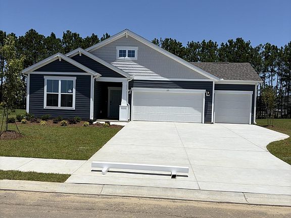Beazer's newest community in Murrells Inlet with 3 car garages! Only 34 huge home sites so will go fast. June Completion Date. This ever-popular 3 car garage Georgetown home features 3 bedrooms, 2 baths, and a covered porch. The marvelous kitchen boasts 42" crisp Linen cabinets, Granite countertops, Whirlpool Stainless Steel Kitchen appliances, range, over the range microwave vented outside, dishwasher, upgraded backsplash, and Progress Lighting pendant lights over the Island. The kitchen sink is located in the counter tops facing the covered porch wooded view. The kitchen Island is a fabulous open space for meal prep, dining, buffet style entertaining, baking, and more. The Great room features a vaulted ceiling and is open to the dining room and kitchen. Both baths feature Simply White quartz counter tops. The primary bath boasts a 5ft walk in shower and double bowl vanity. Mohawk REV Wood laminate flooring and tile is included in all areas. 100% Energy Star Certified and EPA Indoor Air Ready Qualified with the complete 2x6 construction, Full Tyvek house wrap system and spray foam insulation means improved energy efficiency and indoor air quality to give you a healthier, and more comfortable home with less pests, less moisture, less air loss, and a lower utility cost. Premier location minutes from the Marshwalk, dining, shopping and the beach. DISCLOSURE: Photos are of the Georgetown decorated model home and a previously sold Georgetown. Features will vary.