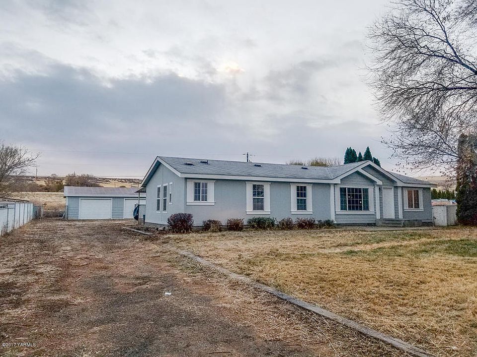 WOW!!! 2003 completely upgraded Skyline manufactured home on a .58 acre lot featuring a detached 3 car garage, storage shed, new tile and carpet flooring, new appliances, new kitchen counter tops, new interior doors and hardware, new interior and exterior paint. 3 bedrooms, 2 baths with office off Master. Garden tub and separate shower in Master. Covered patio. Private well and septic.