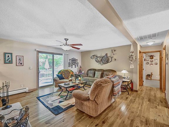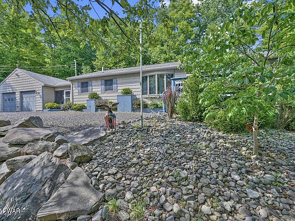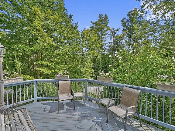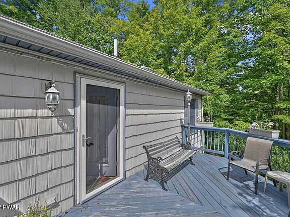 One level living ranch home with no steps to enter, in a four-season amenity filled community in The Northern Poconos, just 2 hours from the NY, NJ and Philly Areas. Located on a corner property on a quiet cul-de-sac in a private wooded located, yet within close proximity to amenities and the main gate. This quality-built vinyl sided home has many upgrades, CENTRAL A/C, Anderson windows/sliding doors, propane fired hot water baseboard central heating system, propane fireplace, solid Oak flooring, custom kitchen with Corian counter tops, ceramic tiled flooring and bathrooms, Primary bedroom/bath with walk-in shower. There's a beautiful breezeway, a huge two car garage, front and rear decks, high unfinished walk-out basement for future expansion. HUGE, OVERSIZED 2 CAR GARAGE, Beds Description: Primary1st, Baths: 2 Bath Lev 1, Eating Area: Dining Area, Beds Description: 2+Bed1st