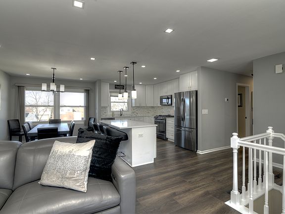 Multiple offers received highest and best due Sunday 2-19 at 8pm. Absolutely Stunning open floor plan home with amazing kitchen remodel! Custom white shaker cabinets, high end quartz counter tops, sleek backsplash, can lighting, countertop seating and gorgeous hardware! Main floor features luxury plank vinyl flooring in the living room, dining room, kitchen and hallway. Full bathroom has a jetted tub perfect for relaxing after a long day. Three spacious bedrooms with ample closets. Lower level boasts gorgeous, dark bamboo flooring and a remodeled fireplace with gas logs! Laundry room has extra storage. So many upgrades have been made by these long time owners including full kitchen remodel 2021, New AC and Hot water Heater 2021, New Vinyl Privacy Fence 2022, bathrooms remodeled 2010, Roof new in 2006, siding, soffits, gutters and all windows replaced in 2006! There's absolutely nothing to do in this home! Prime location in the center of town with short walk to Library, town center, park district and more. Short drive to both 390, 355 and every store and restaurant imaginable. Hurry Home!