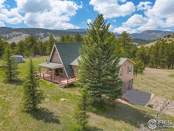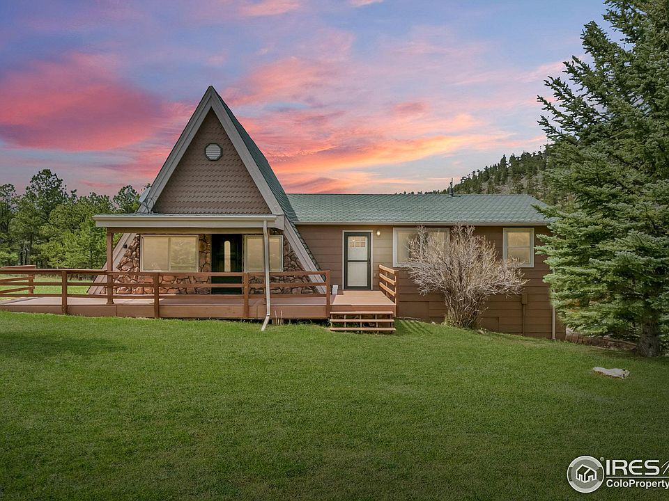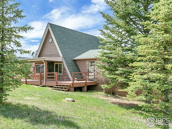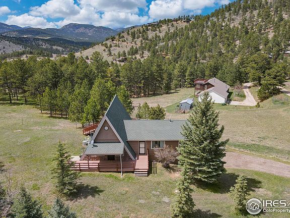 This charming and dreamy A-frame in the foothills of Loveland has so much to offer with breathtaking views, an abundance of wildlife, is a short drive to Loveland or Carter Lake, and steps away from trails and Pinewood Reservoir. This four bed, three bathroom home includes a beautiful and airy loft, walk-out basement with separate entrance that creates a convenient, spacious, and private in-law/guest space, and an inspiring sunroom- a multitude of options and inspiring spaces to work, create, and relax. You will love entertaining outdoors on the deck and lower patio or warming up in front of a cozy fire in the living room. The oversized, heated two-car garage allows for plenty of bike, kayak, or paddle board storage and the ample lot (with no HOA) creates plenty of storage for a boat or camper. This peaceful and tranquil home cannot be beat!