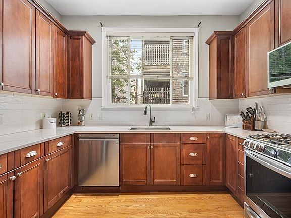 OPEN HOUSE Thursday May 25th 5pm-6pm! Beautiful 2 bedroom 2 bathroom duplex ideally located in South Boston's East side one block from the beach now available! The main level boasts hardwood floors throughout, a large living area with bay windows, 10 foot ceilings, an updated kitchen with quartz countertops, a peninsula with plenty of seating and brand new LG appliances! An updated full bath and two closets with ample storage complete the 1st level. The lower level features two queen sized bedrooms with laminate flooring, another full bath with in unit washer/dryer, additional storage and a walkout to your own large private patio with pavers. Recently updated central A/C/ + heat, this unit is move in and summer ready!