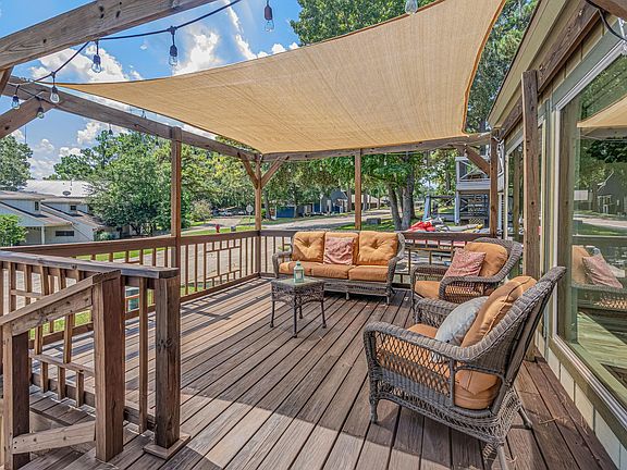 Amazing lake views from your kitchen and living room or sit out on the covered front deck to enjoy the breeze. Just steps to the marina to fish from the banks or launch your boat. Enjoy additional outdoor living space under the converted carport to watch your favorite sports that includes a storage room for your lake toys, fishing poles, etc. Spacious kitchen with granite countertops, stainless steel appliances and breakfast bar that opens to the living room with high ceilings. An abundance of natural light with updated Picture windows. Refrigerator, Washer/Dryer & Outdoor TV convey with the home. Great home for fulltime living or family vacation. This Golf cart friendly community is gated with 24-hour security along with plenty amenities and walking trails. Bring your golf cart and cruise down to the pool, park or for a game of basketball with the family & friends.