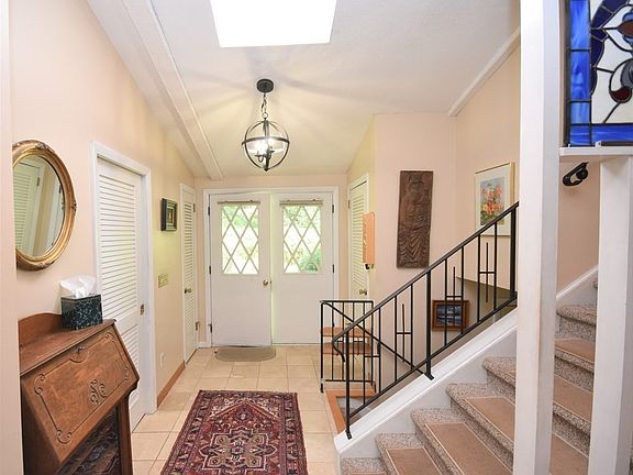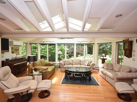 This home sits on one of the most coveted lots in Echo Hill overlooking the swimming pond and with sunsets. This multi-story contemporary offering gracious gathering and getaway spaces on 4 levels. Large entry foyer for greeting guests leads into the dramatic living room with fireplace and bank of windows overlooking the well landscaped yard.Open floor plan is perfect for entertaining. Eat-in kitchen was updated with ample cabinetry, solid counters and laundry closet. The master has a bank of closets, a large soaking tub and on suite bath. Three additional bedrooms & remodeled bath make up the top level. From garages, you enter the mud room and the family room with a slider to the backyard. Lowest level has two spacious rooms and a 3/4 bath. Enjoy the Goshen stone walls and walk and path to the pond. Sunny yard with expansive deck for entertaining. Many updates! PVTA, Pond, Robert Frost Trail and nature outside your door. Come Preview!