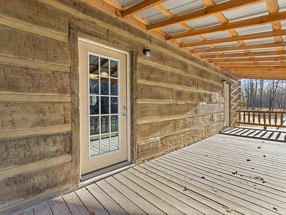 New Construction Concrete Log Cabin on .5 acre wooded lot in peaceful setting just outside city limits of Corbin. 3 bedroom, 2 bathrooms, kitchen with granite counter tops and stainless appliances, 2 story gas fireplace, R30 insulated walls, creek running at the edge of the back yard, tankless hot water heater, 2 covered porches (metal roof), pine floors. MUST see to fully appreciate! Ready for immediate possession!! Move in ready!!