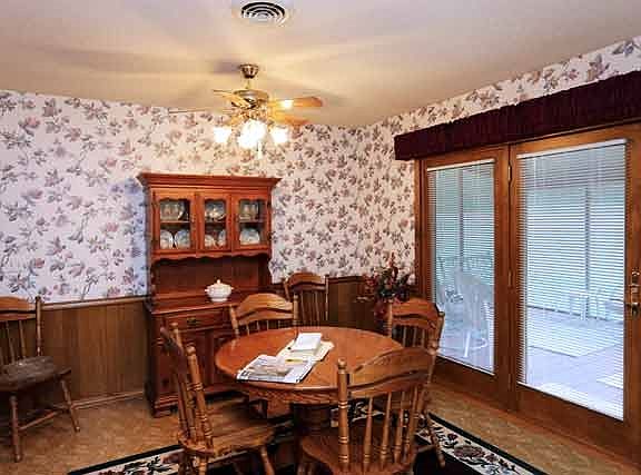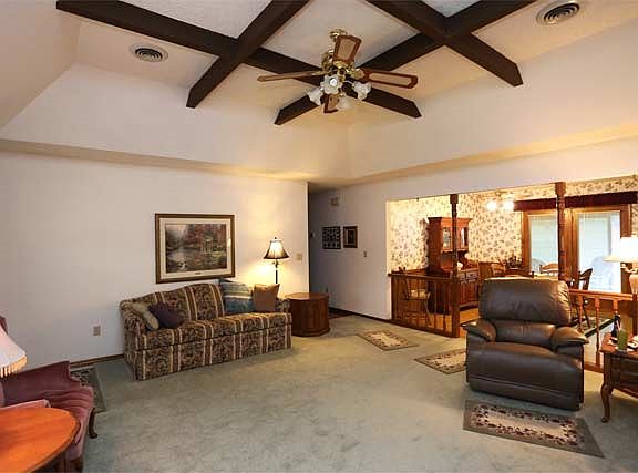 Well maintained immaculate home in quiet area of LG. Large living area with wood-burning FP insert and blower. Kitchen and dining combo. CHA and stove/oven is fairly new. Large master bedroom with walk-in closet. Extra storage in hallway closet and cabinets. Pretty French doors open from the dining area to the covered back patio. Two storage buildings. The garage is oversized with shelving area and a bonus/pantry/storage room with sink.