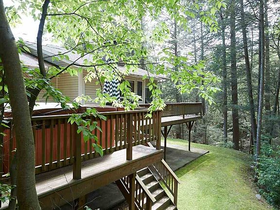 Dare to Dream! Ever imagine coming home to a place of total peace? This lovely tri-level contemporary home is situated above the noise of the work day. A welcoming home that is tucked amidst the mountains with beautiful wooded and waterfall views. Could this home be your dream come true? Maybe entertaining is your special talent. There is nothing like an up to date country kitchen with an eat in area to create in. A formal dining room , living room with vaulted ceilings and a second fireplace will keep your family and friends close by at night. Maybe your pleasure is making the most of the great outdoors. The expansive decking opens up to showcase wooded vista's and stunning private waterfall views. This is truly a wonderful place to sit in the Jacuzzi and listen to nature's music. Beautiful, turn key and ready for you to make your country dreams come true. Easy to show and easier to make your home.