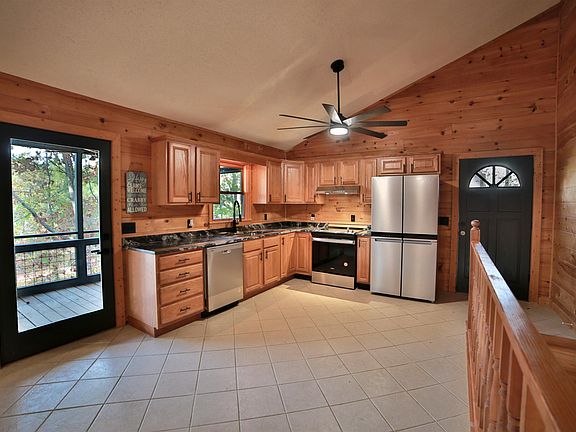 Totally renovated, 3 bed, 3 full bath lake home. 2 Bedrooms and 2 full baths located on the main level including the master suite. The bathrooms have been updated with custom tile showers and fixtures. Open floor plan with rustic heart pine walls and vaulted ceilings in the great room and kitchen. Kitchen has been updated with granite counter tops and new stainless appliances. Enjoy fall evenings next to the wood burning stone fireplace or step outside onto the screen deck to soak in the beautiful foliage and views of the lake. The terrace level has a new LVT flooring, den, third bedroom and full bath. Easy walk to a floating dock with a sun deck, boat lift and a jet ski port on 165 feet of year round water. Come see it today!