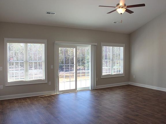 Spacious Hemlock Alt plan, entry foyer, relaxing front porch, rear screened porch and patio. Open floor plan, dining room with tray ceiling, living room has a vaulted ceiling, ceiling fan, large kitchen has lots of solid custom built wood cabinets with crown molding, breakfast counter, stainless steel appliances - microwave, smooth top stove, dishwasher and a pantry closet. Split bedrooms - Master suite has a tray ceiling with ceiling fan, huge walk-in closet, double bowl sinks in a raised height vanity, 5' tile walk-in shower, and a linen closet. Guest bedrooms and bath on opposite side of the house. Blinds package included. Gutters, front and back, sodded yard with irrigation system, and a spacious 2- car garage that is finished and painted inside with an electric garage door opener and pull down stairs to attic storage. Award winning local builder. Video is for illustrative purposes only and may be of a similar home built elsewhere. Square footage is approximate and not guaranteed. Buyer responsible for verification.