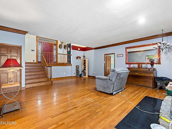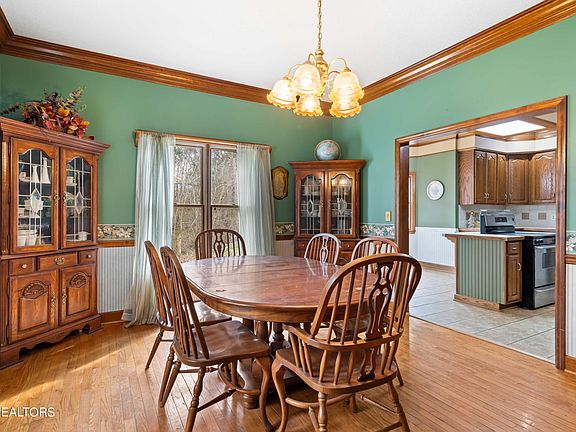 Are you in search of a spacious two-story brick home nestled within the city limits of Caryville? This property boasts 1.86 acres tucked away at the end of a private drive. Have you always wanted an inground pool with complete privacy? Allow me to introduce you to 171 Homer Evans Ln, a remarkable home meticulously constructed by the current owner. Built with 2x6 construction and full brick, every detail speaks to the quality craftsmanship invested. From the elegant crown molding to the original hardwood floors, the attention to detail is evident throughout. Cozy up in the living room next to the stone fireplace with an insert for warmth during winter nights. The formal dining room, bathed in natural light, offers an inviting space for gatherings. The kitchen has great potential, featuring generous oak cabinets, stainless steel appliances, and complete with a beautiful bay window. The spacious master suite boasts a tray ceiling, his and her closets, and an ensuite awaiting your personal touch. Upstairs, discover a billiard room or second living area alongside four of the six bedrooms. Split bedrooms with a shared jack and jill bath are located on one wing. The other two bedrooms are on the opposite side with another bath for convenience. Downstairs, a vast 1,680 sqft of mostly unfinished space awaits your creative vision, including a bedroom and bathroom. Consider finishing this space to make it a 4,796 sqft home. With some updating and TLC, this home is poised to shine as it once did, with significant equity to be immediately made in this one-of-a-kind home. Step outside onto the private back deck - an ideal spot for embracing nature, which could easily be transformed into a screened porch. The outdoor amenities include an inground pool, circular drive, two-car detached garage, and serene privacy backed up to Cove Lake State Park. If you like to entertain guests, this homes doesn't get any better! Nature enthusiasts will appreciate the proximity to ATV trails, making this property potentially ideal for short-term rentals. Conveniently located minutes from I-75, ATV trails, and Norris Lake, this home offers both tranquility and accessibility. Schedule your private tour today!