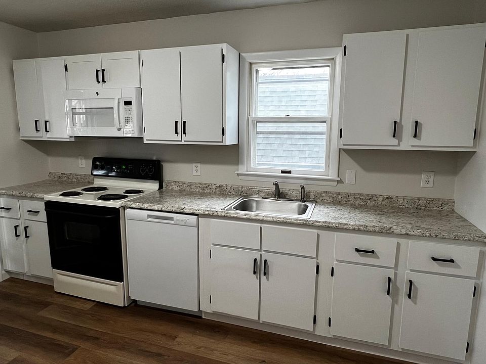 Large newly renovated with AC , 2 bedroom 1 bathroom in quite residential neighborhood with new floors, paint, and counter tops. Like new appliances. New dishwasher installed On site laundry. Off street parking. Large patio, new mini split Heat and AC in unit. Located near EB and Pfizer in residential area Available end of March Well maintained property with hot water included Tenant responsible for electricity, cable, internet. No smoking. First month and security due at lease signing. One year minimum for lease. One cat with $250 pet fee allowed.
