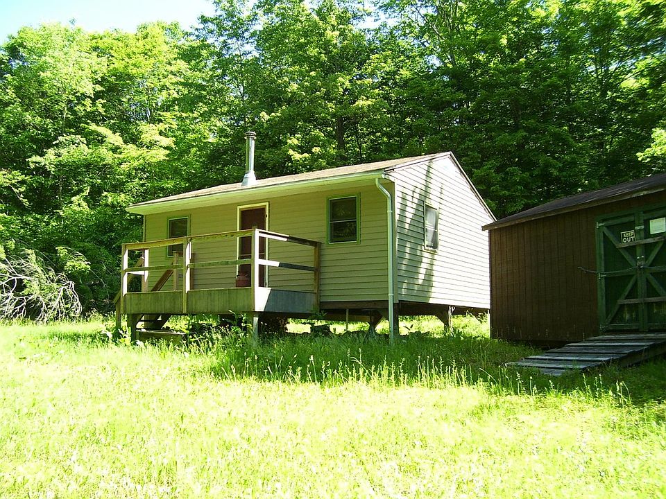 Perfect rustic getaway. 40+ acres with stream that connects to stateland. Mostly wooded with 1 room cabin that sits back from the road for additional privacy. Make this your hunting/vacation retreat.