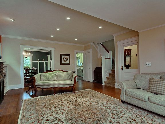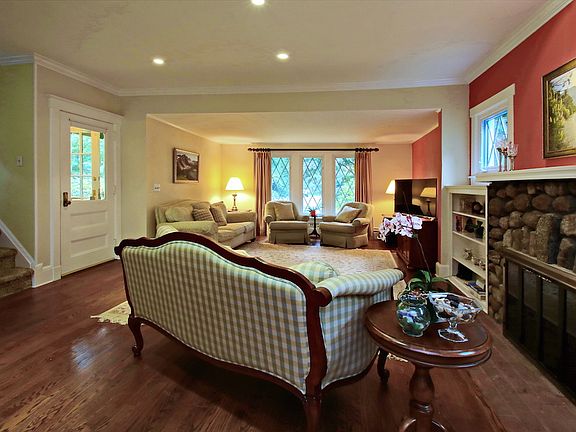 Charming and elegant home in Ridgewood's Wastena Park neighborhood/Ridge School district. This house offers great flow in a great location. A light filled family home features hardwood floors and classic moldings throughout. The first floor has a large formal living room with fireplace, elegant dining room with custom wainscoting, and a recently renovated white eat-in kitchen with outside entry and powder room. The second floor boasts a master bedroom with large walk in closet, full hall bath, two more spacious bedrooms, one has an adjacent heated sunroom. Finished basement with laundry, storage and finished recreation room. The lush backyard is private, landscaped with stone patios/flat with a fenced play yard. This is truly a beautiful home in one of Ridgewood's most sought after neighborhoods.