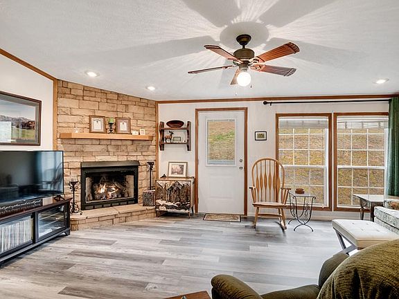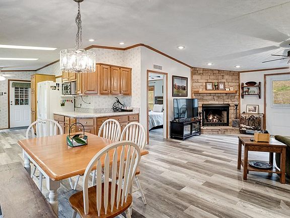 This 3 Bedroom 2 Bath is built with 2x6 exterior walls, an open floor plan beautiful home is ready to move in and has a gorgeous setting in an area of attractive and well kept homes. Has a spacious kitchen with an eat-in area plus a formal dining area. Gas log fireplace with remote control thermostat. A murphy bed especially built into the second bedroom - very attractive and comfortable too. A large 24x26 double attached Garage done October 2018. Covered 12x16 front porch ( completed Fall 2017 ) to enjoy the view from. New LVT ( luxury vinyl tile ) just installed July 6th 2020 through most of the home. Includes kitchen appliances - Smooth glass top Range with Enamel coated convection Oven, French Door Style Refrigerator, Microwave, Dishwasher and Granite Kitchen Sink with front cabinet trays that tip out. The Master Bath has comfort height double vanity. And both bathrooms have comfort height toilets. It's Private and peaceful, easy access, 3.5 miles outside city limits, even has a cluster mailbox at end of road for secure mail. * Shown by appointment only.